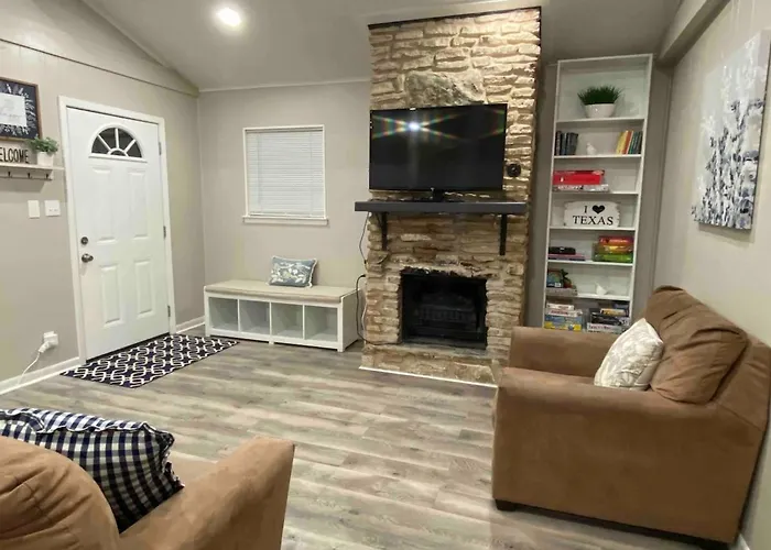 Strategisch günstig im Herzen von Bandera gelegen, bietet das Blue Bird Cottage direkten Zugang zu Sehenswürdigkeiten und Aktivitäten. Die Umgebung ist geprägt von malerischen Wanderwegen, Flüssen und den charmanten Geschäften der Stadt, die nur einen kurzen Spaziergang entfernt sind.